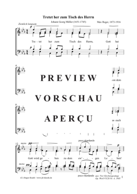 Tretet her zum Tisch des Herrn - Noten für Gemischter Chor Max Reger