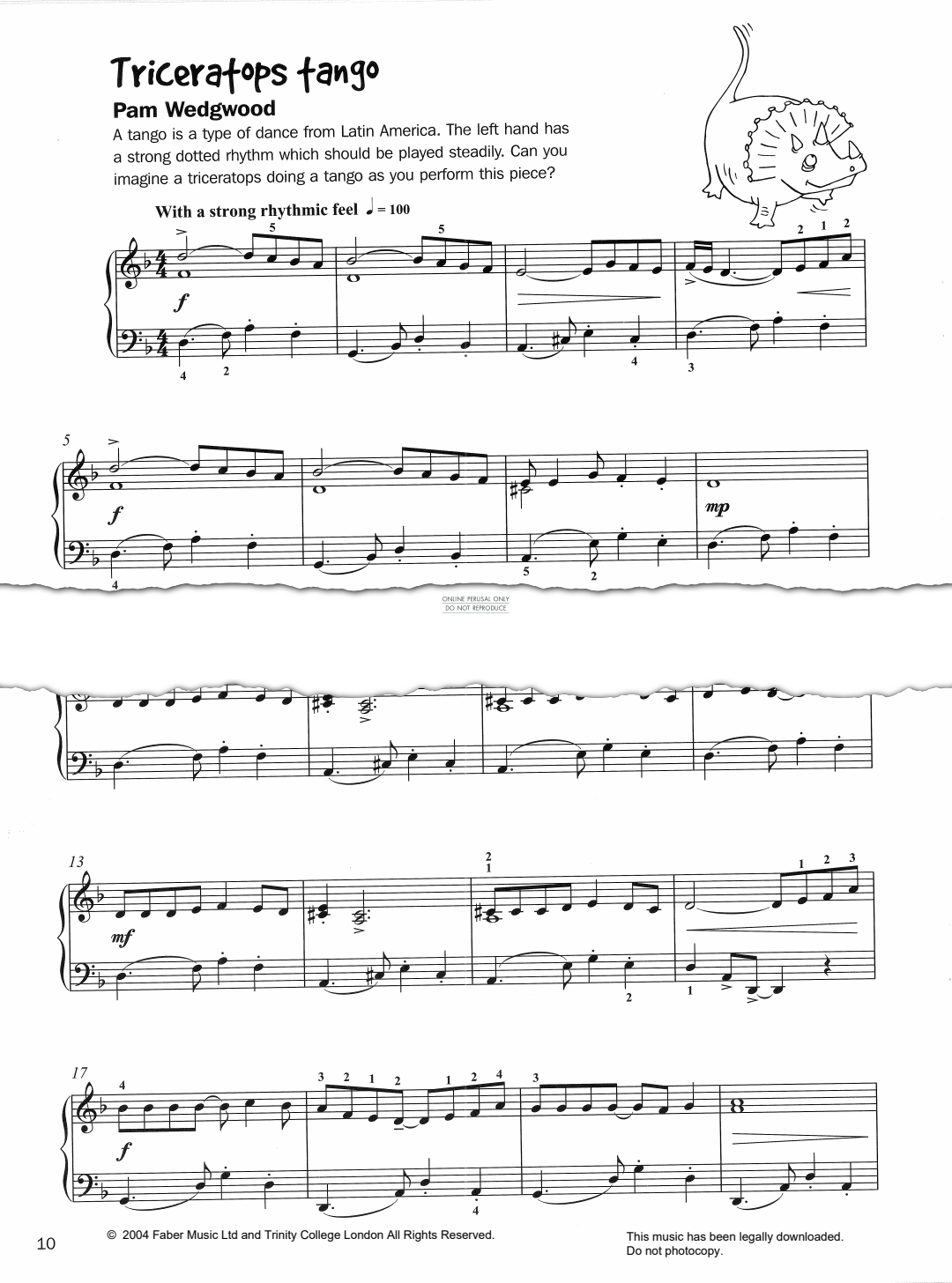Triceratops Tango - Noten für Klavier Pam Wedgwood