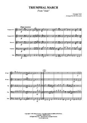 Triumph-Marsch aus Aida - Noten fĂŒr BlechblĂ€serquintett - Horn in F+B Giuseppe Verdi (arr. Holcombe)