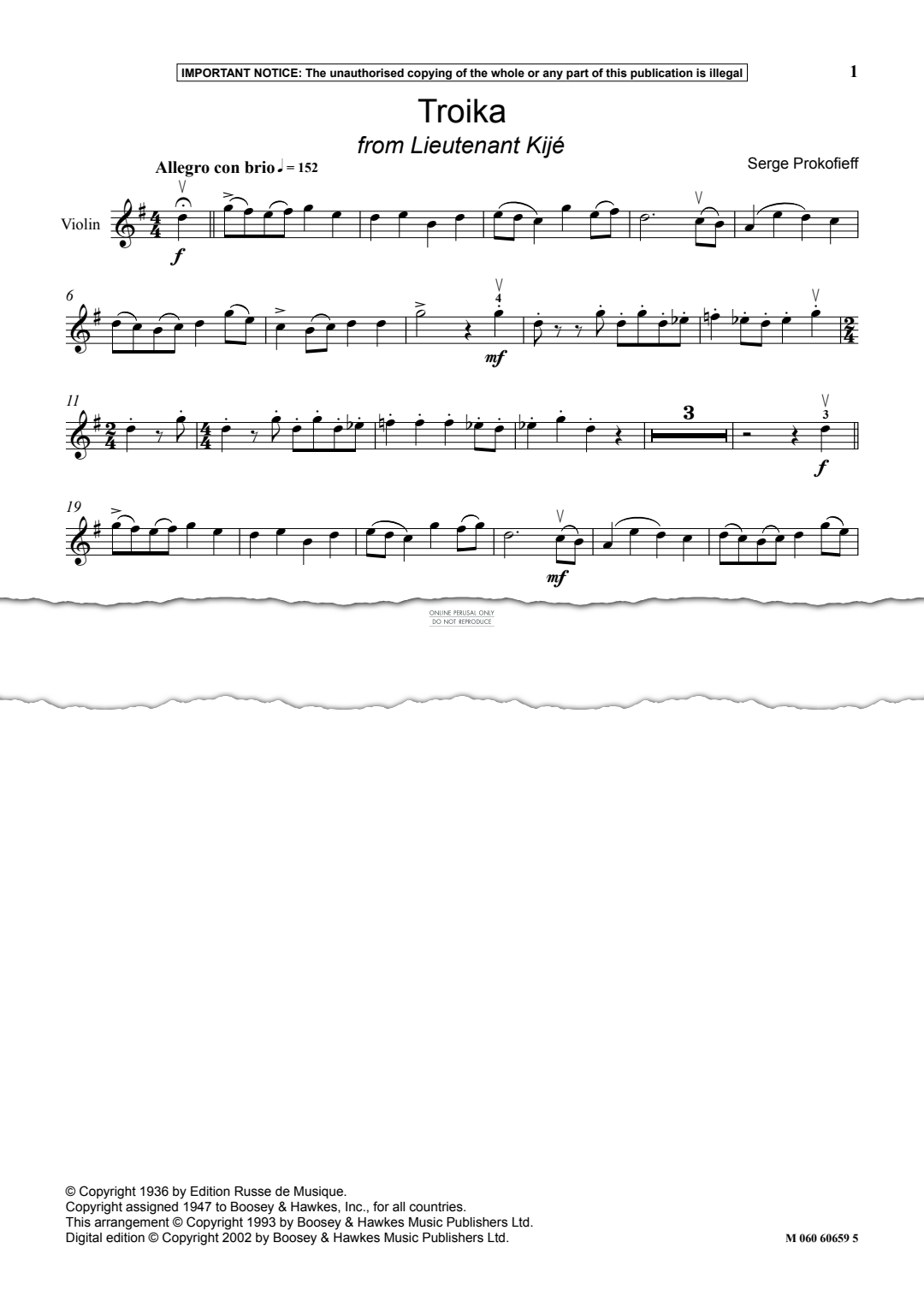 Troika from 'Lieutenant Kije' - Noten für Keyboard, Violine Serge Prokofieff