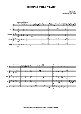 Trumpet Voluntary - Noten fĂŒr HolzblĂ€ser-Quintett John Stanley (arr. Keith Terrett)