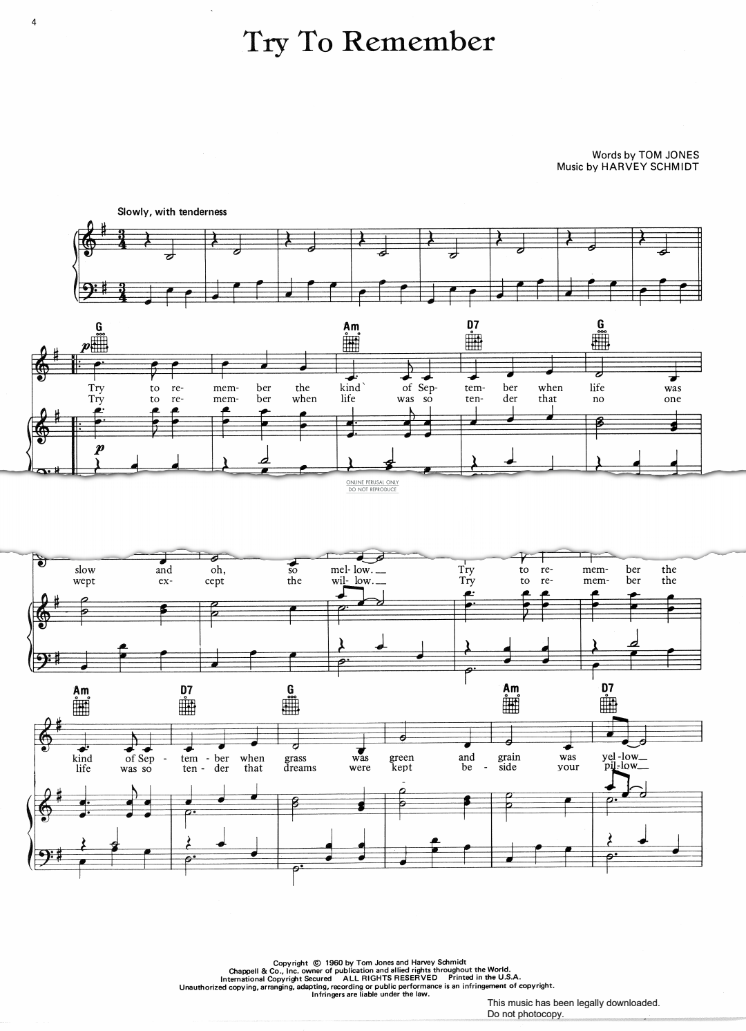Try To Remember (Gitarre, Klavier, Gesang, Duett, Mittelschwer)