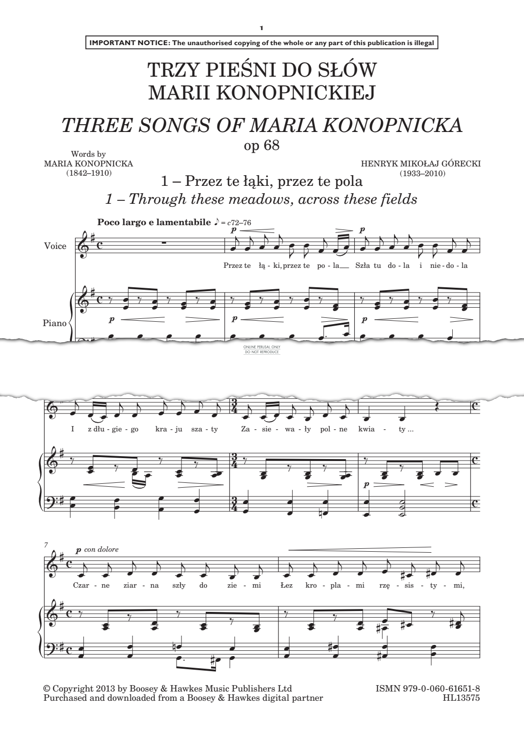 Trzy piesni do slów Marii Konopnickiej (Three songs of Maria Konopnicka) - Noten für Gesang, Klavier Henryk Mikolaj Górecki