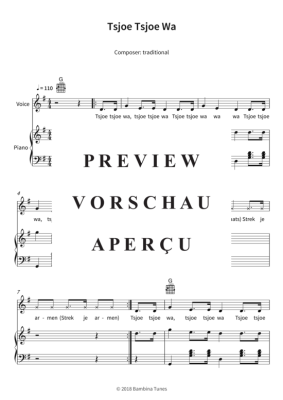 Tsjoe Tsjoe Wa - Noten für Gesang + Klavier, Gitarre traditional
