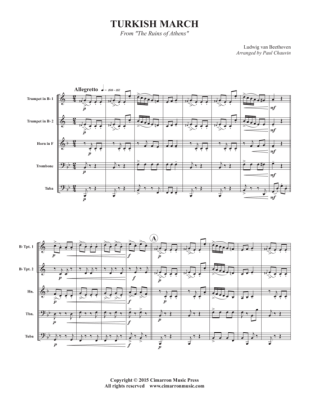 Türkischer Marsch (Turkish March) - Noten für Blechbläserquintett Ludwig Van Beethoven