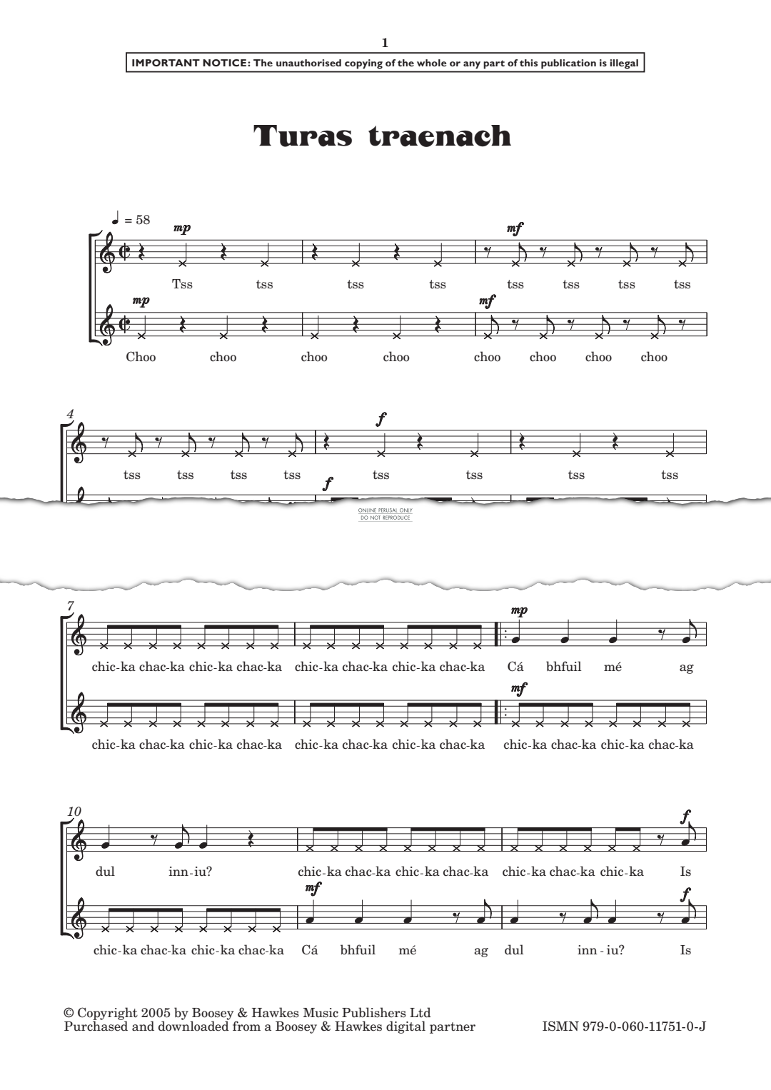 Turas traenach (Train journey) - Noten für Chor, Gesang, Klavier Sue Furlong