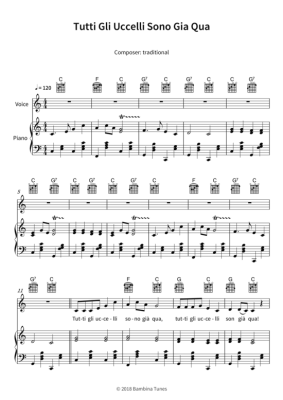 Tutti Gli Uccelli Sono Gia Qua - Noten für Gesang + Klavier, Gitarre traditional