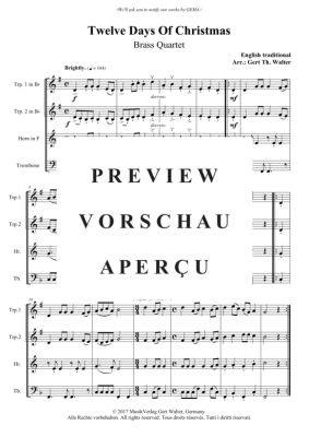 Twelve Days Of Christmas - Noten für Blechbläserquartett Traditional