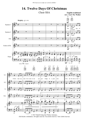 Twelve Days Of Christmas - Noten für Frauenchor, Gitarre + Klavier Traditional