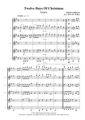 Twelve Days Of Christmas - Noten für 6 Gitarren Traditional