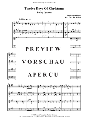 Twelve Days Of Christmas - Noten für Streicherquartett Traditional