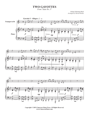 Two Gavottes - Noten für Trompete in B + Klavier Johann Sebastian Bach
