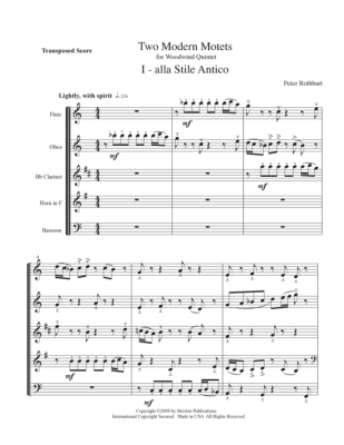 Two Modern Motets - Noten fĂŒr HolzblĂ€ser Quintett Flöte, Oboe, Klarinette, Horn, Fagott Peter Rothbart