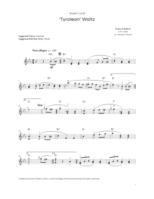 Tyrolean Waltz (from LCME Electronic Keyboard Grade 7 List B) - Noten für Klavier Franz Schubert