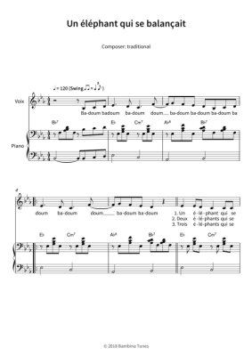 Dieses Werk enthält die Originalnoten des beliebten französischen Kinderlieds "Un éléphant qui se balançait", einfach arrangiert in Es-Dur für Klavier und Gesang.