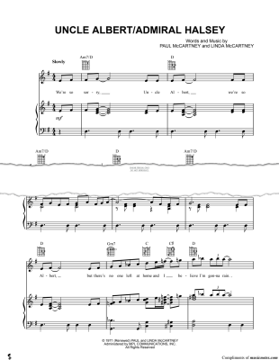 Uncle Albert / Admiral Halsey - Noten für Gesang, Gitarre, Klavier Paul McCartney