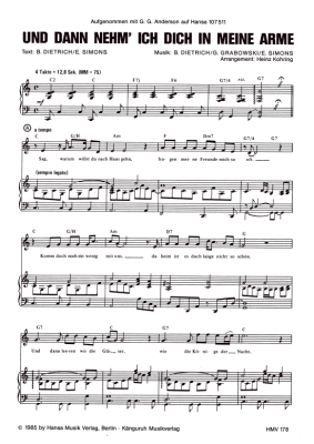 Und dann nehm ich dich in meine Arme - Noten für Klavier und Gesang G.G. Anderson