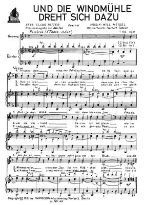Und die Windmühle dreht sich dazu - Noten für Klavier und Gesang Foxtrott