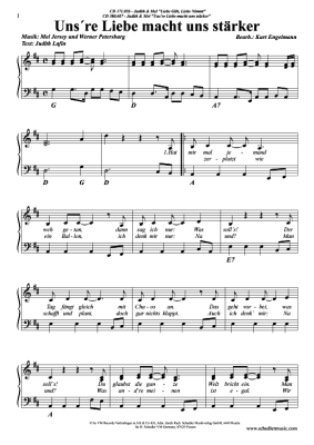 Uns're Liebe macht uns stärker - Noten für Klavier und Gesang Judith & Mel
