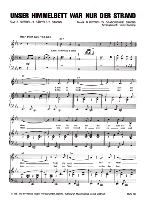 Unser Himmelbett war nur der Strand - Noten für Klavier und Gesang G.G. Anderson