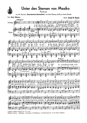 Unter den Sternen von Mexiko - Noten für Klavier und Gesang aus: Bezaubernde Schwindlerin (Operette)