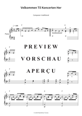 Velkommen Til Koncerten Her - Noten für Klavier Solo traditional
