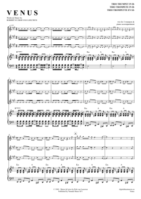 Venus - Noten für Trompeten Trio + Klavier Shocking Blue