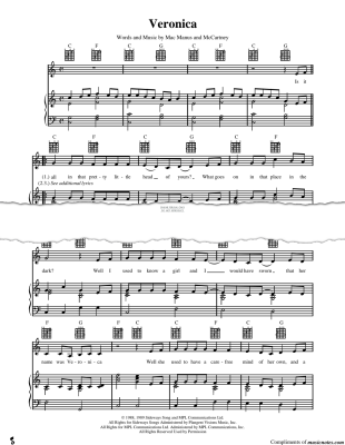 Veronica - Noten für Gesang, Gitarre, Klavier Elvis Costello