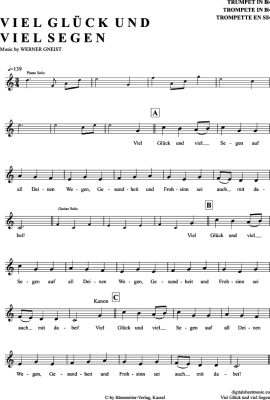 Viel Glück Und Viel Segen - Noten für Trompete in B Volkslied