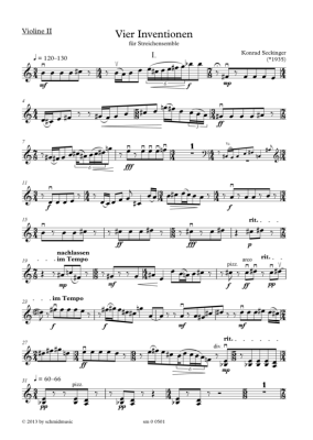 Vier Inventionen - Noten für Streichquintett, Stimmen Konrad Seckinger