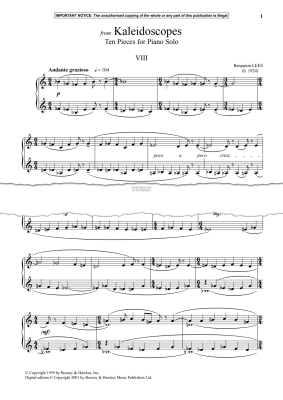 VIII from Kaleidoscopes, Ten Pieces for Piano Solo - Noten für Klavier Benjamin Lees