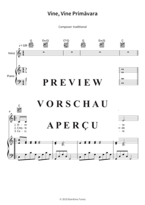Vine, Vine Primavara - Noten für Gesang + Klavier, Gitarre traditional