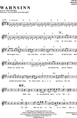 Wahnsinn - Noten für Gesang Wolfgang Petry