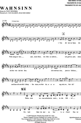 Wahnsinn - Noten für Trompete in B Wolfgang Petry