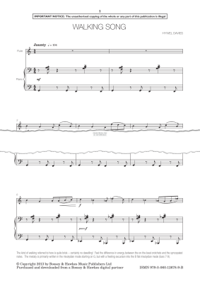 Walking Song - Noten für Flöte, Klavier Hywel Davies