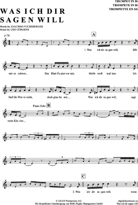 Was Ich Dir Sagen Will - Noten für Trompete in B Udo Jürgens