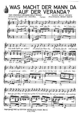 Was macht der Mann da, auf der Veranda? - Noten für Klavier und Gesang Tango