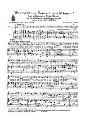 Was macht eine Frau mit zwei Männern - Noten für Klavier und Gesang Walzer