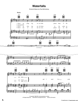 Waterfalls - Noten für Gesang, Gitarre, Klavier Paul McCartney