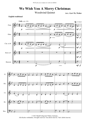 We Wish You A Merry Christmas - Noten für Holzbläserquintett Traditional