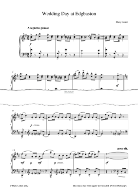 Wedding Day at Edgbaston - Noten für Klavier Mary Cohen