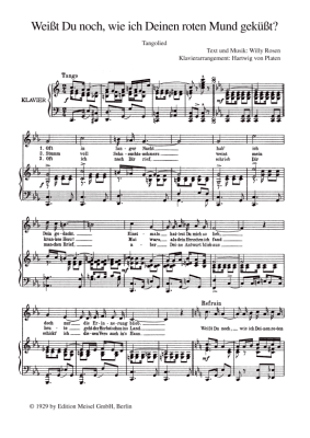 Weißt Du noch, wie ich Deinen roten Mund geküsst - Noten für Klavier und Gesang