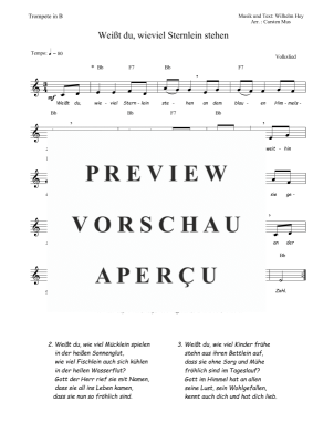 Weißt du, wieviel Sternlein stehen - Noten für Trompete in B Solo & Akkorde Wilhelm, Hey