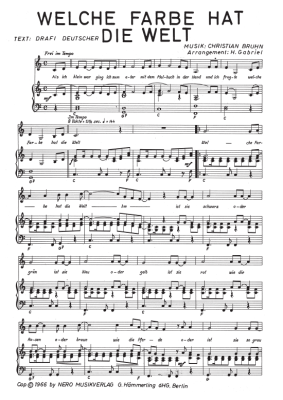 Welche Farbe hat die Welt - Noten für Klavier und Gesang Drafi Deutscher