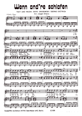 Wenn andre schlafen - Noten für Klavier und Gesang Bernhard Brink