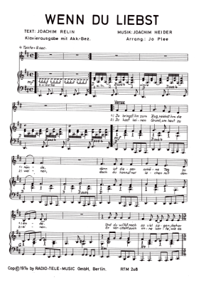 Wenn Du liebst - Noten für Klavier und Gesang Manuela