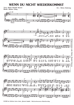 Wenn Du nicht wiederkommst - Noten für Klavier und Gesang Heinz Rudolf Kunze / Stefan Gwildis
