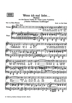Wenn ich mal liebe - Noten für Klavier und Gesang aus: Fräulein Hoffmanns Erzählungen
