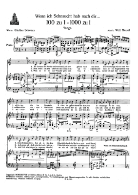 Wenn ich Sehnsucht hab nach Dir - Noten für Klavier und Gesang Tango