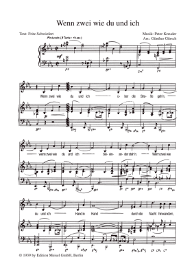 Wenn zwei wie du und ich - Noten für Klavier und Gesang